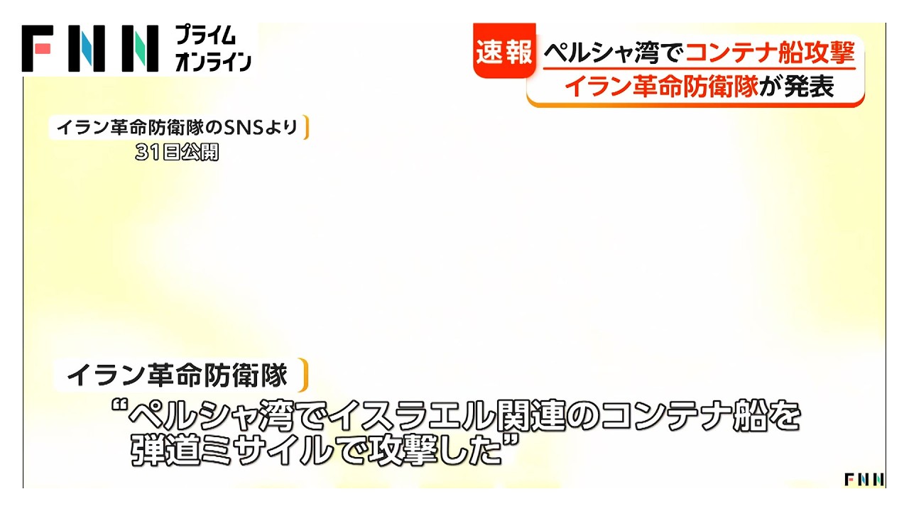 イラン革命防衛隊「ペルシャ湾でコンテナ船攻撃」と発表 (2026年03月31日)
